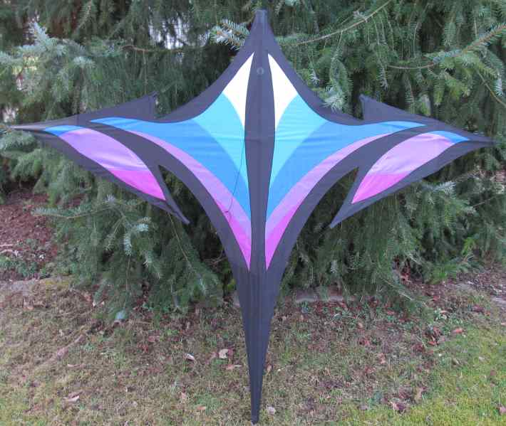Spannweite: 4 x 80 cm Standhöhe: 245 cm Stäbe: Cfk + Gfk 3 + 5 mm Segel: Polyester appliziert Wind: ab 2,5-5 Bft. (12-38 km/h) Alter: ab 12 Jahre empfohlene Leine: ab ca. 45 daN