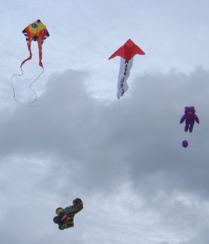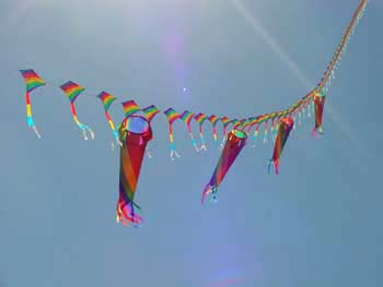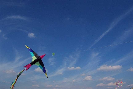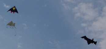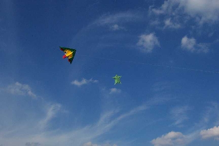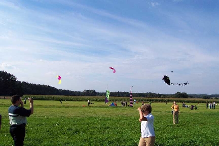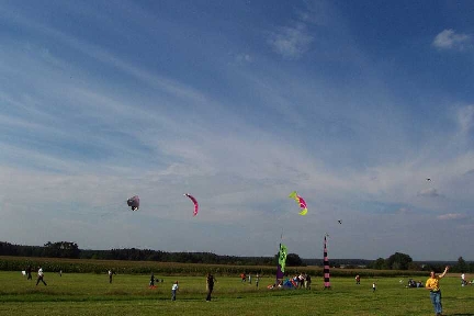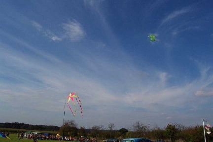 Das Drachenfest in Volkersgau ist ein Geheimtip für alle Drachenfreunde (und Freundinnen :), welche nur ihrem Hobby fröhnen wollen. Ohne Hektik und Streß. Kein festes Programm, keine dröhnende Verstärkerberieselung - nur Ruhe und Frieden und Drachenfliegen. Dank sei dem Obst- und Gartenbauverein Volkersgau - deren Mitglieder hier eine großartige Idee mit viel Engagement und Arbeit in die Tat umgesetzt haben. Die Kinder haben jede Menge Freiraum, ihre kleinen Magic Flyers oder Eddys über die Wiesen zu ziehen - in unermüdlichen Runden. In den letzten warmen Sonnenstrahlen des vergehenden Sommers - den Herbstanfang genießen - eine Leine mit einem schönen Drachen am Ende - den noch sehr warmen Wind auf der Haut spüren - die netten, freundlichen Menschen um sich - was kann es schöneres geben?? Vielen Dank an die Mitglieder des Obst-und Gartenbauvereins Volkersgau, welche dieses schöne Drachenfest erst ermöglichen. |