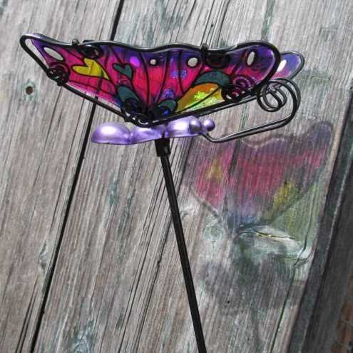 |  | “Glas Butterfly” orange oder p urple Der Plant Pick - Glas Butterfly ist ein außergewöhnlicher und farbenfroher Gartenstecker, den man mit keinem anderem vergleichen kann. Das verwendete Metall ist pulverbeschichtet, das dickwandige handbemalte Glas mehrfach gebrannt, was für eine Langlebigkeit steht. Die lebhaften, ja fast lebensechten blauen Farbtöne, die Form und das Spiel zwischen Metall und Glas suchen seiner gleichen. Die Liebe zum Detail und die Präzision mit der dieser Schmetterling angefertigt wurde sind nur einige Punkte, die für diese wunderschöne Wanddekoration sprechen. Ob als Dekoration im Garten, im Außenbereich oder in Ihren 4 Wänden selbst in dem kleinsten Blumentopf, ist dieser Stecker ein auffälliges Accessoire, an dem ganz sicher keiner achtlos vorbeigeht, ohne einen neidischen Blick auf diese zu werfen. Als Geschenk oder für Sie selbst: dieser Schmetterling ist ein Must Have. empfohlener Verkaufspreis: € 8,- |