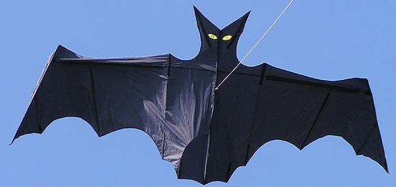 | Manfred Uphoff hat diesen Bat Kite erdacht, der im Flug so originell mit den Flügeln schlägt. Drachen im Fledermausdesign gibt es viele, aber nur dieser hier hat es bis zum Kultstatus und Titelhelden für ganze Drachenfeste geschafft und der mittlerweile bei den meisten Drachentreffen am Himmel nach Artgenossen sucht - und solche auch findet!! | BIG Flapping Bat