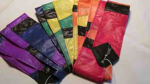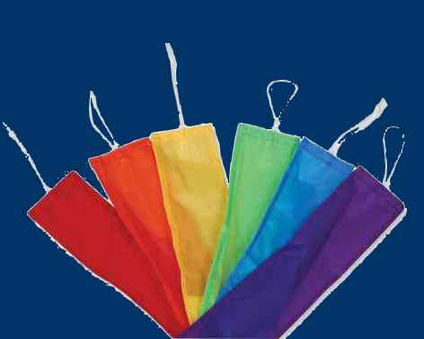 Fransenschwänze “Fringe Tail regenbogen” Länge: 7 m Breite: 15 cm Tuch: Ripstop-Polyester empfohlener Verkaufspreis: € 12,-- mit Wirbelkarabiner |