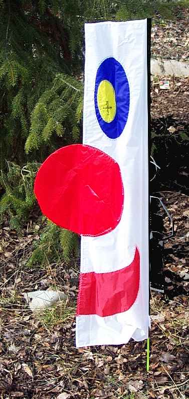 Motiv: Länge: 120 cm Breite: 33 cm Stab: Gfk Tuch: Polyester /appliziert UV-beständig und wetterfest