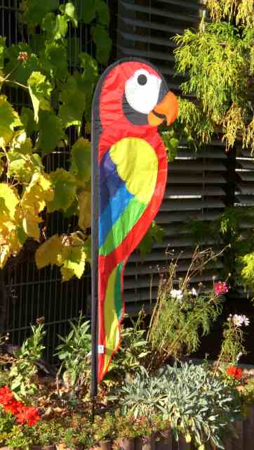 Der leuchtend rote Ara mit seinem bunten Federkleid ist ein echter Hingucker. Da kommt bestimmt Urlaubsfreude auf. Auf freien Flächen kommt dieses Windspiel besonders gut zur Geltung. Im Pflanzbeet fühlt er sich auch sehr wohl. Dieser Papagei ist ein farbenfroher Blickfang für den Garten und d a s ideale Mitbringsel für die nächste Gartenparty . v e r s p r o c h e n !!!!