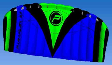 PARAFLEX Sport 1.7 in blau vorrätig Spannweite: 170 cm Tiefe: 70 cm Tuch: 70 D Ripstop Polyester Wind: 2 - 6 Bft. Alter: ab ca. 12 Jahre ready to fly mit 75 daN gefl. Dyneemaleinen 2 x 20 m auf Lenkbar. empfohlener Verkaufspreis: € 74,--