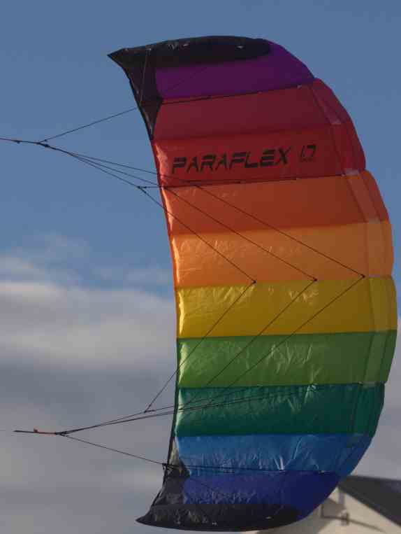 | PARAFLEX Basic 1.2 regenbogen Breite: 120 cm Tiefe: 60 cm Tuch: 70 D Ripstop Polyester Wind: ca. 2-6 Bft Alter: ab ca. 8 Jahre ready to fly mit 45 daN Polyesterleinen 2 x 25 m /Schlaufen empfohlener Verkaufspreis: € 35,90 unser Preis: € 32,--