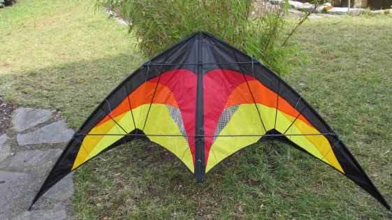 Spannweite: 220 cm Standhöhe : 95 cm Segel: Ripstop-Polyester Gestänge: 6 mm Cfk und Dynamic T15 Alter: ab ca. 14 Jahre Wind: ab ca.2 - 5 Bft. ready to fly mit 60 daN Dyneemaleinen , 2 x 25 m auf Winder mit Schlaufen Inclusive zwei 15 g- Gewichte für sichere Tricks bei kräftigem Wind.